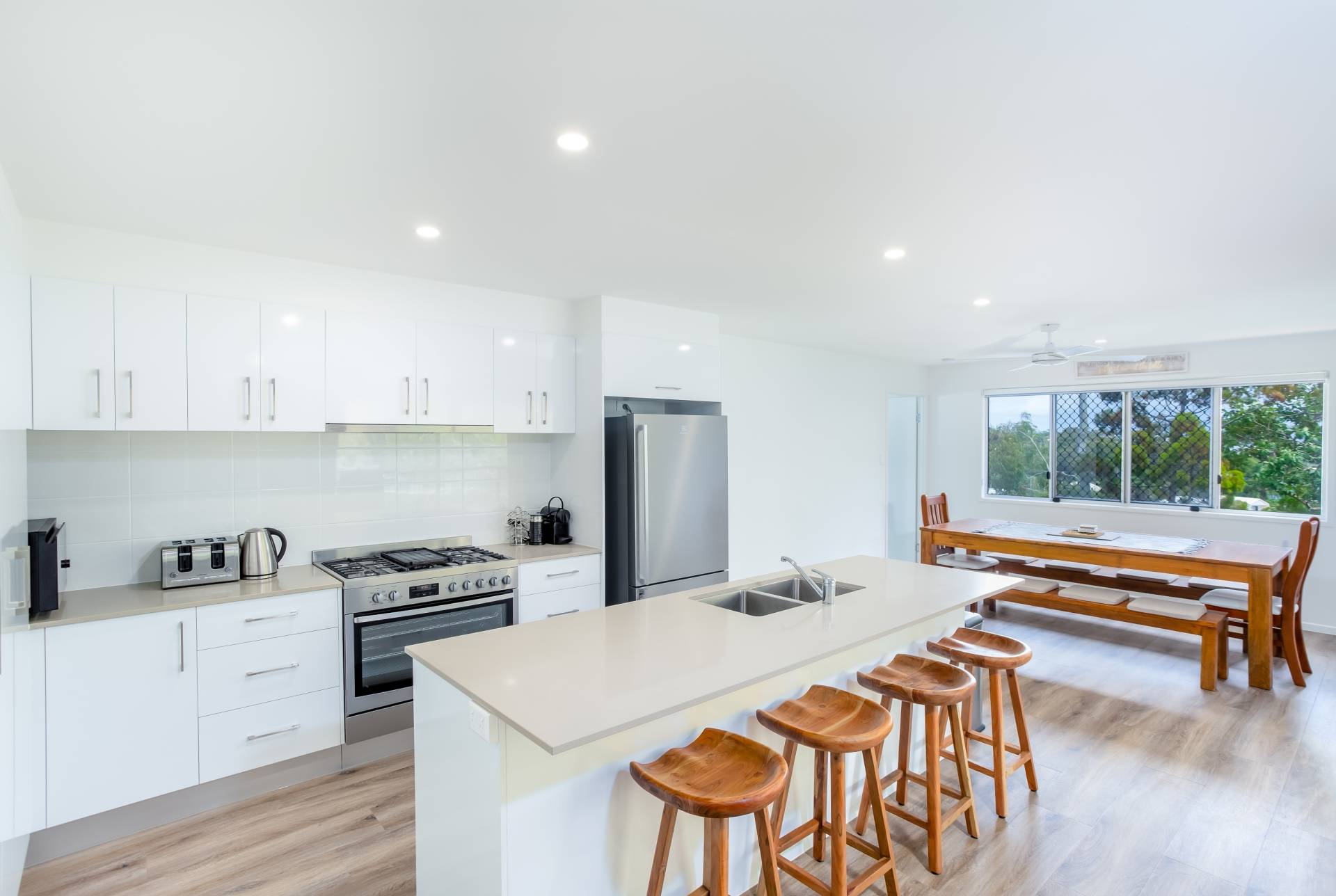 * Large kitchen with 900mm oven and cooktop plus a Nespresso cofee machine (BYO Nespresso coffee pods)