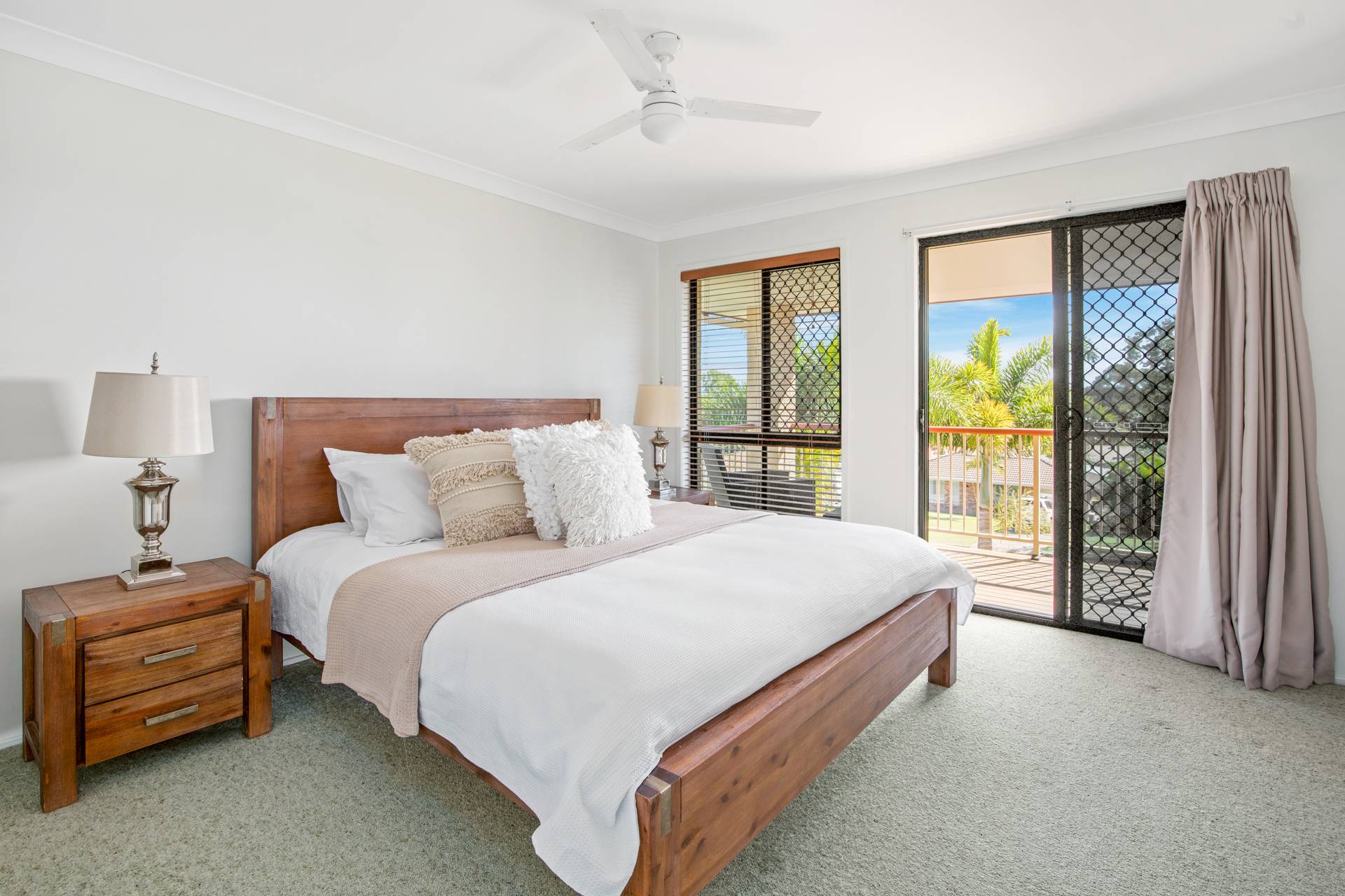 The master bedroom and second bedroom both open out into the generous balcony.