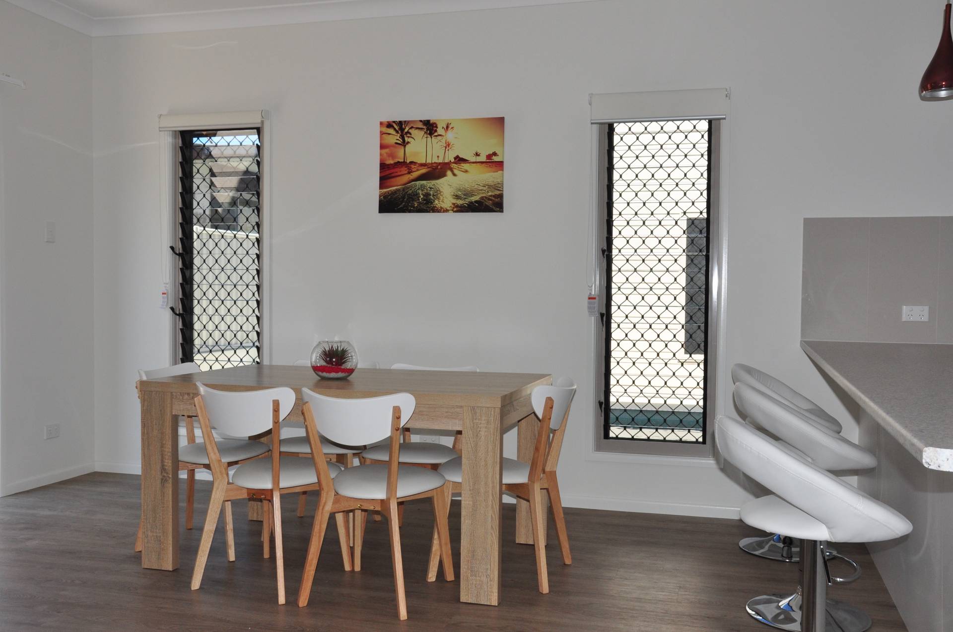 * Open plan living, dining and kitchen area