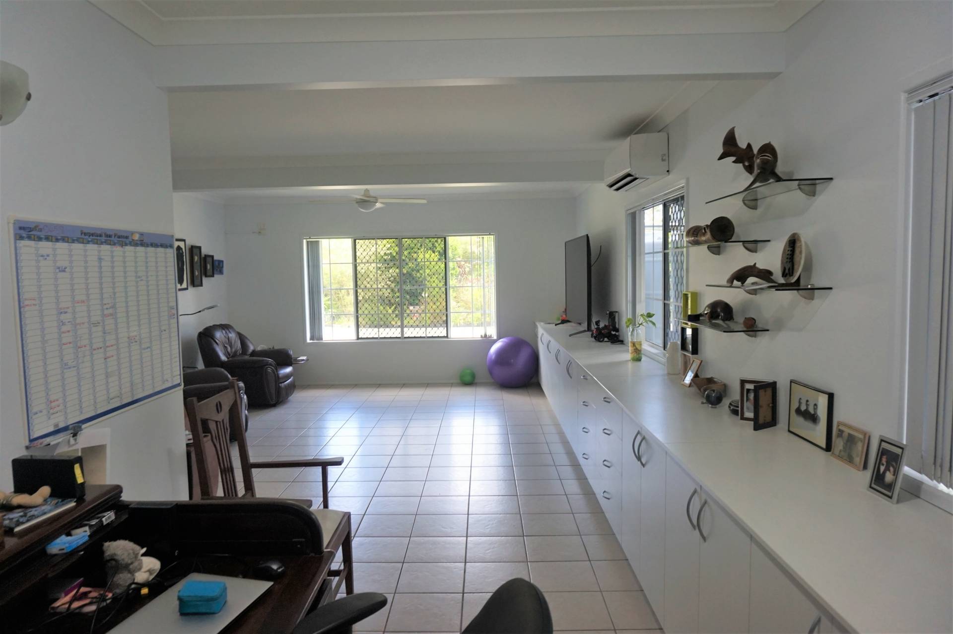 Its rare that a property comes up that ticks as many boxes as this does. This large family home has five, good size bedrooms. One of the bedrooms has been converted to an office but can easily convert back. Four of the bedrooms are located upstairs; main bedroom has ensuite, walk in robe and storage cupboard. There is also a trio bathroom on the same floor meaning separate bath with vanity, separate shower room, separate toilet and extra vanity in the exit area. The third bathroom is downstairs next to the fifth bedroom. On the lower level you will also find separate lounge, formal dining area, kitchen dining area and large air conditioned family room.
