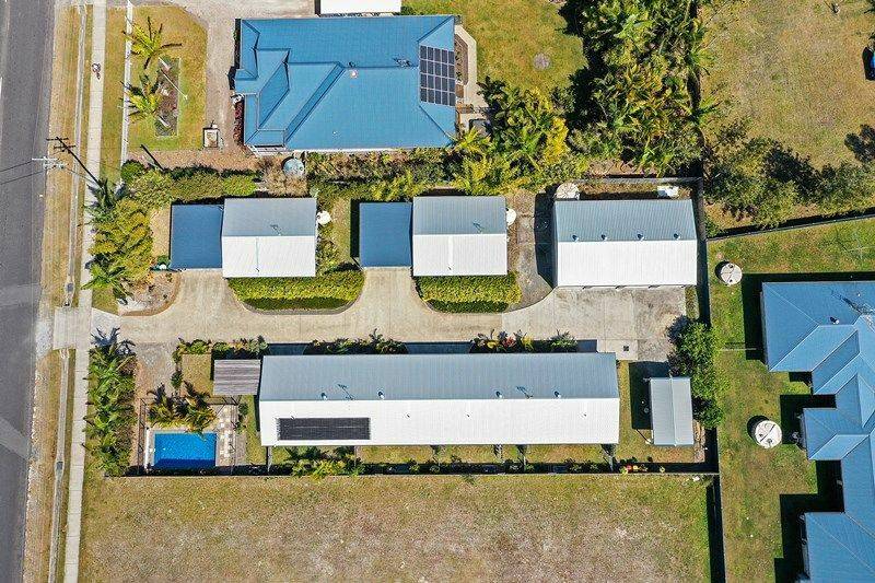 This property is the only one of its kind in Cooloola Cove, the complex is ideally situated, walking distance to the Woolworths shopping Centre, Doctors, coffee shop, bakery, and bottle shop. There are four x one bedroom units and two x two bedroom units within the complex. Each unit is modern, tiled throughout, air conditioned and has their own carport. The complex also has a four bay shed, car wash bay and inground pool.