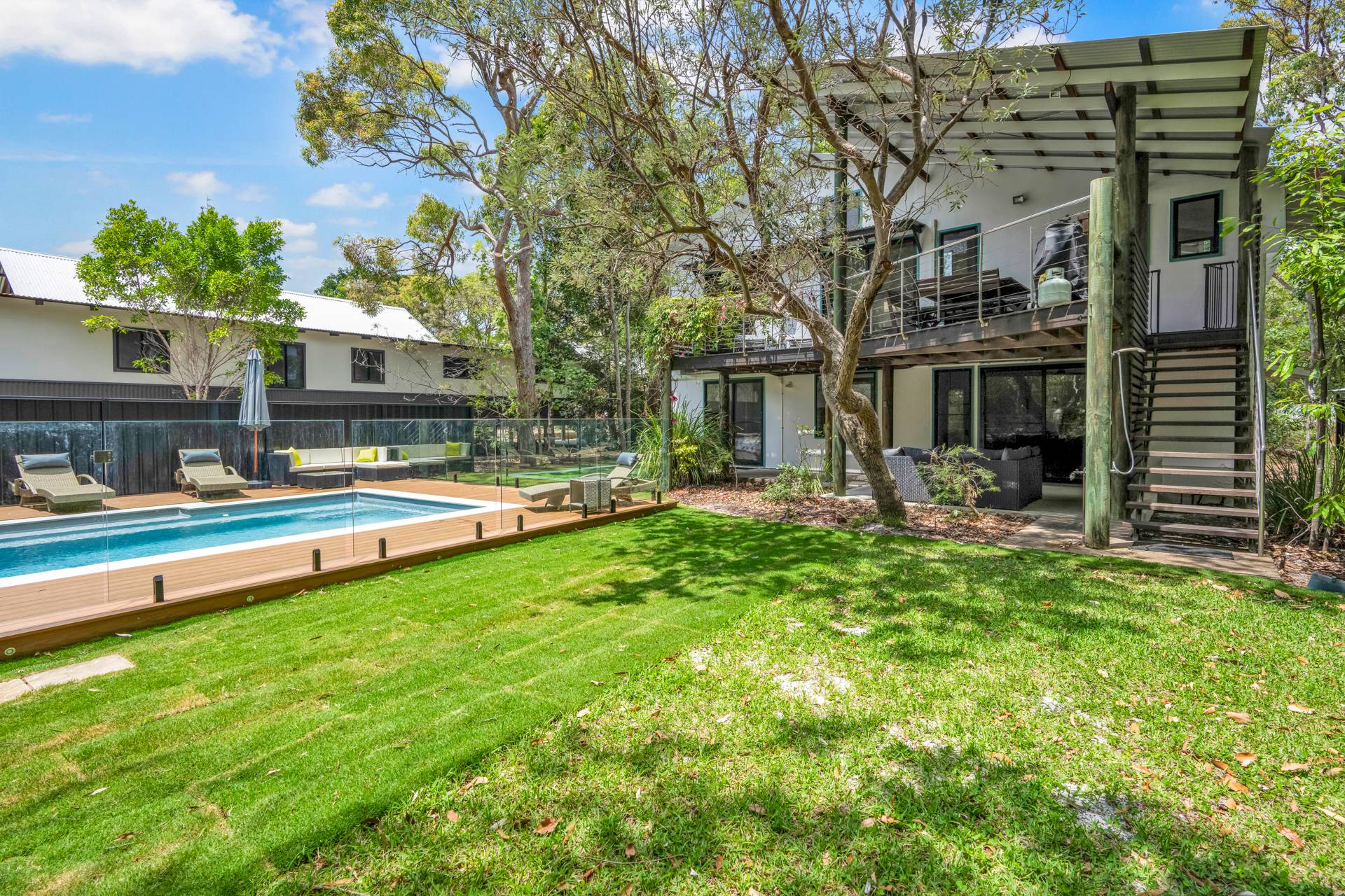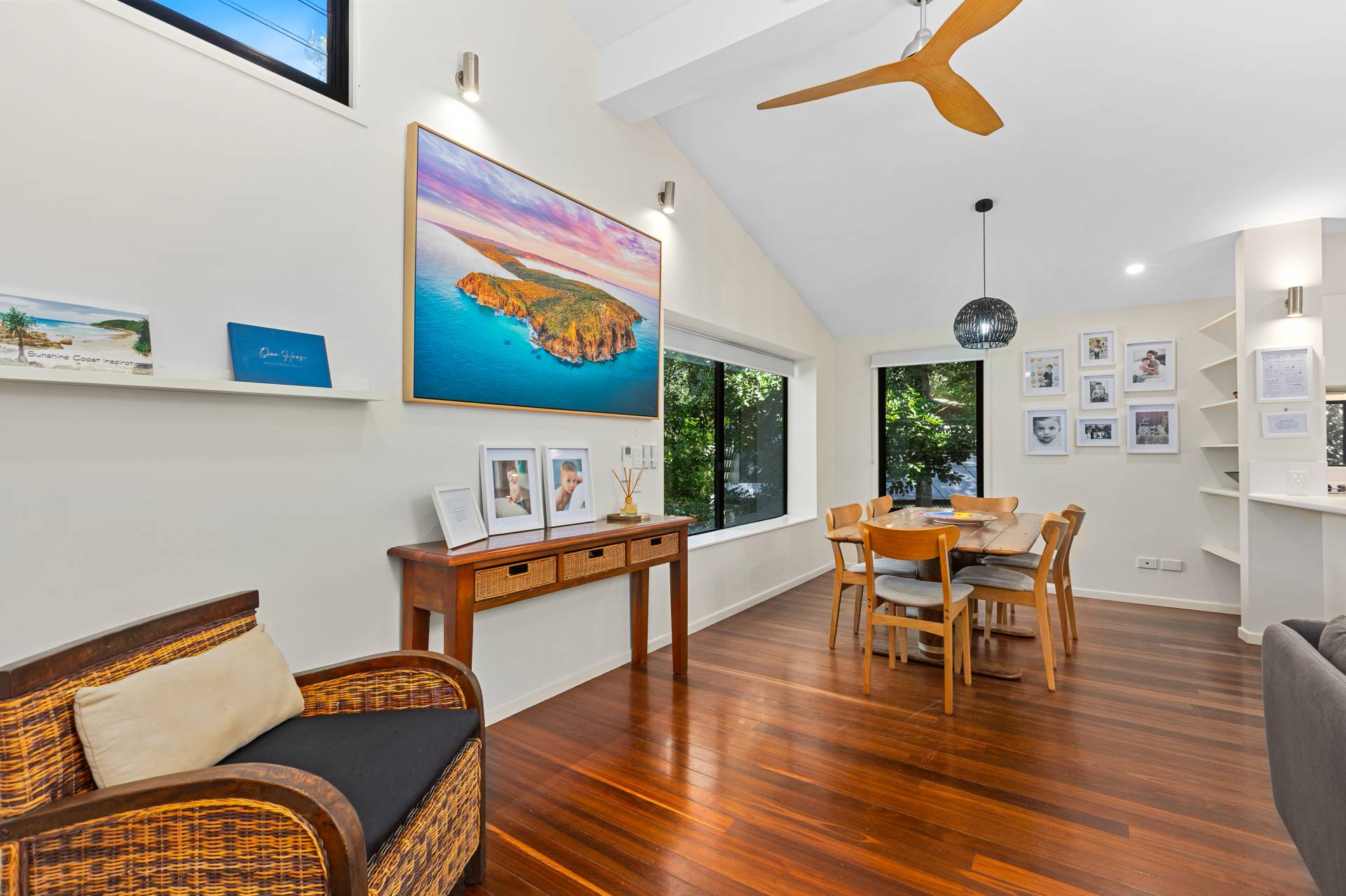 This beautifully appointed family beach house is set in native bushland within 250 metres of the rolling surf of Rainbow Beach via a bush track. The holiday home is in a fantastic location and is perfect for the kids as well as the whole family.