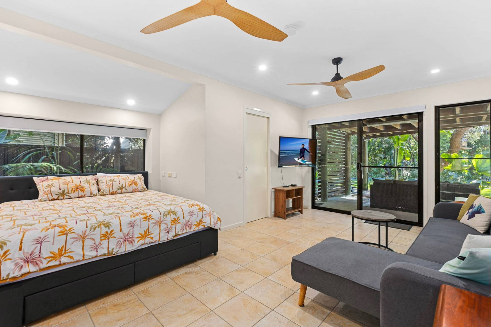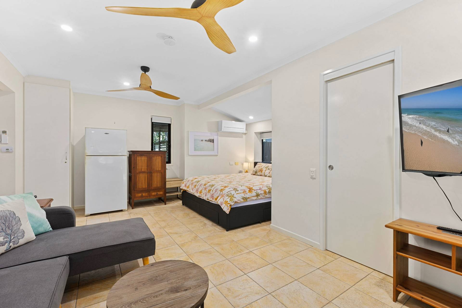 Rumpus room with TV and a King bed with Air Conditioning