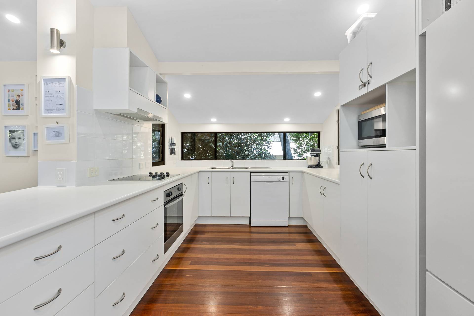 This two-storey home is centered around the beautiful open plan living and entertaining area upstairs with high raked ceilings, plenty of natural light and opening onto the large rear balcony overlooking the bush. With a perfect northerly aspect, this space is enjoyable all year round.
