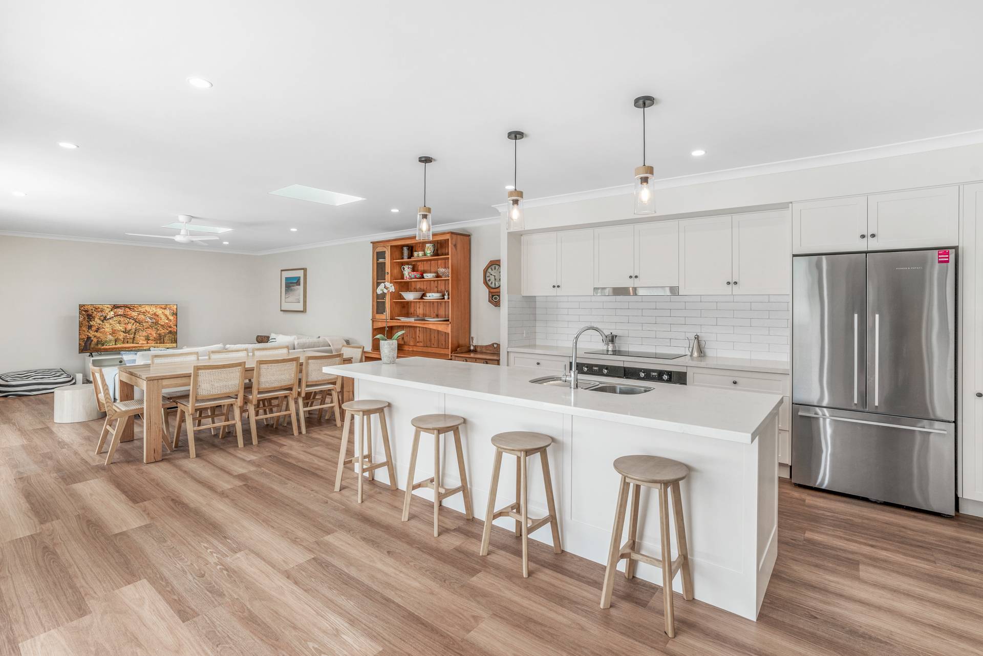 * Open plan kitchen, dining and living area