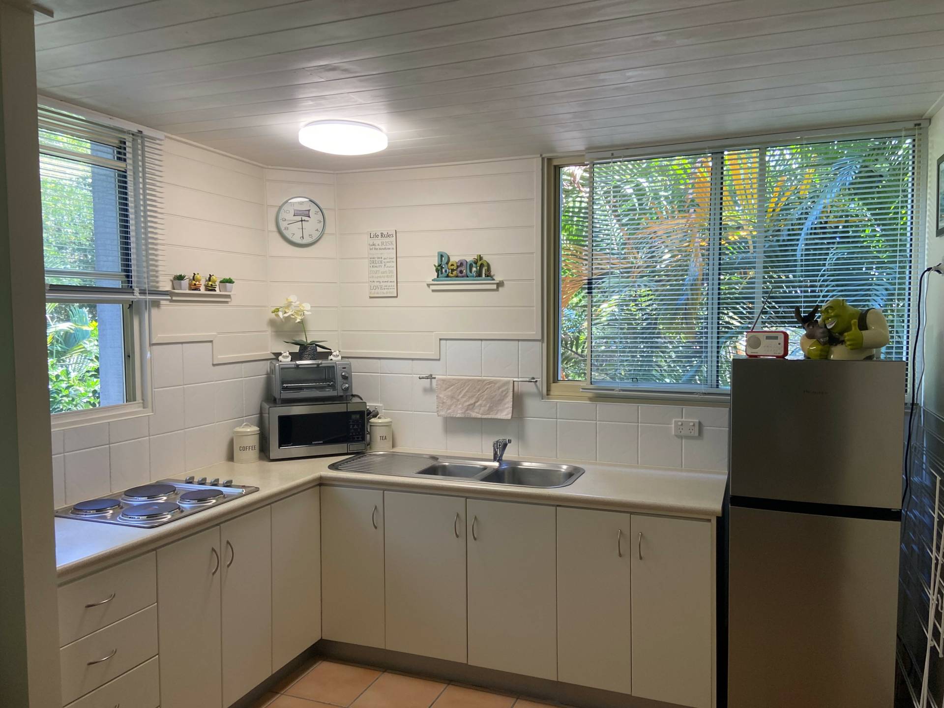 With unique detailing including pine paneled, whitewashed ceilings; this beautifully presented unit has the quintessential laidback, beachside living style.