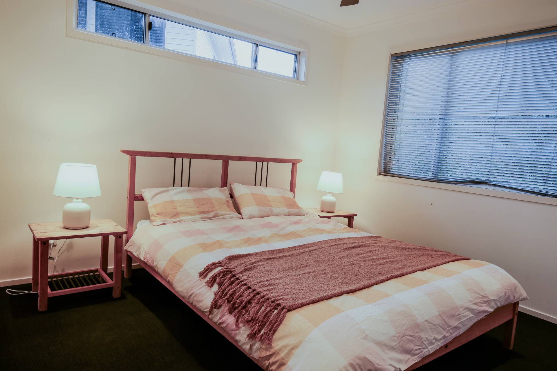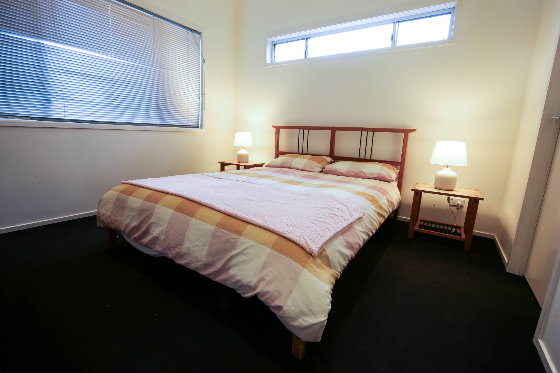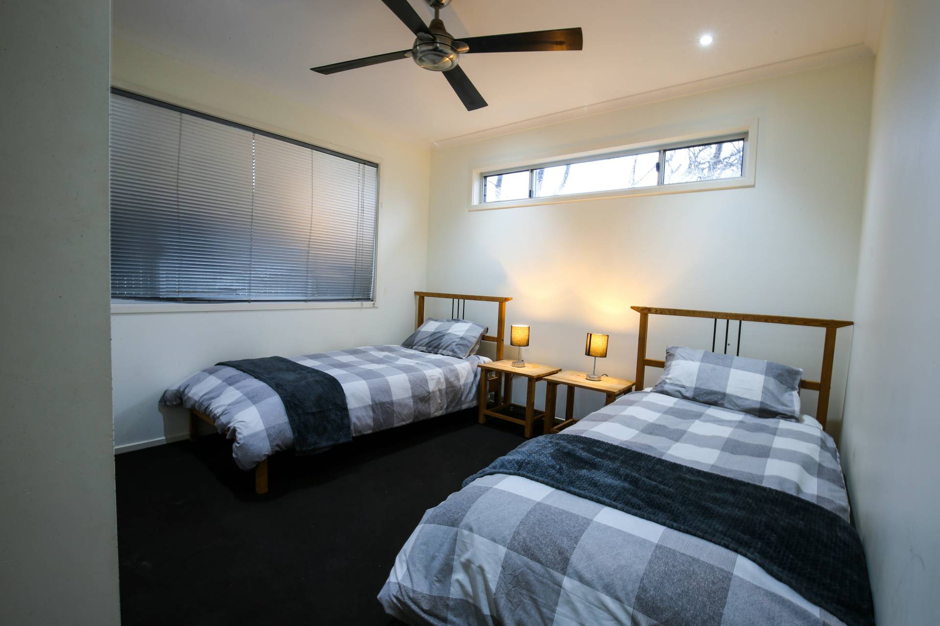 Two bedrooms with one queen and two single beds