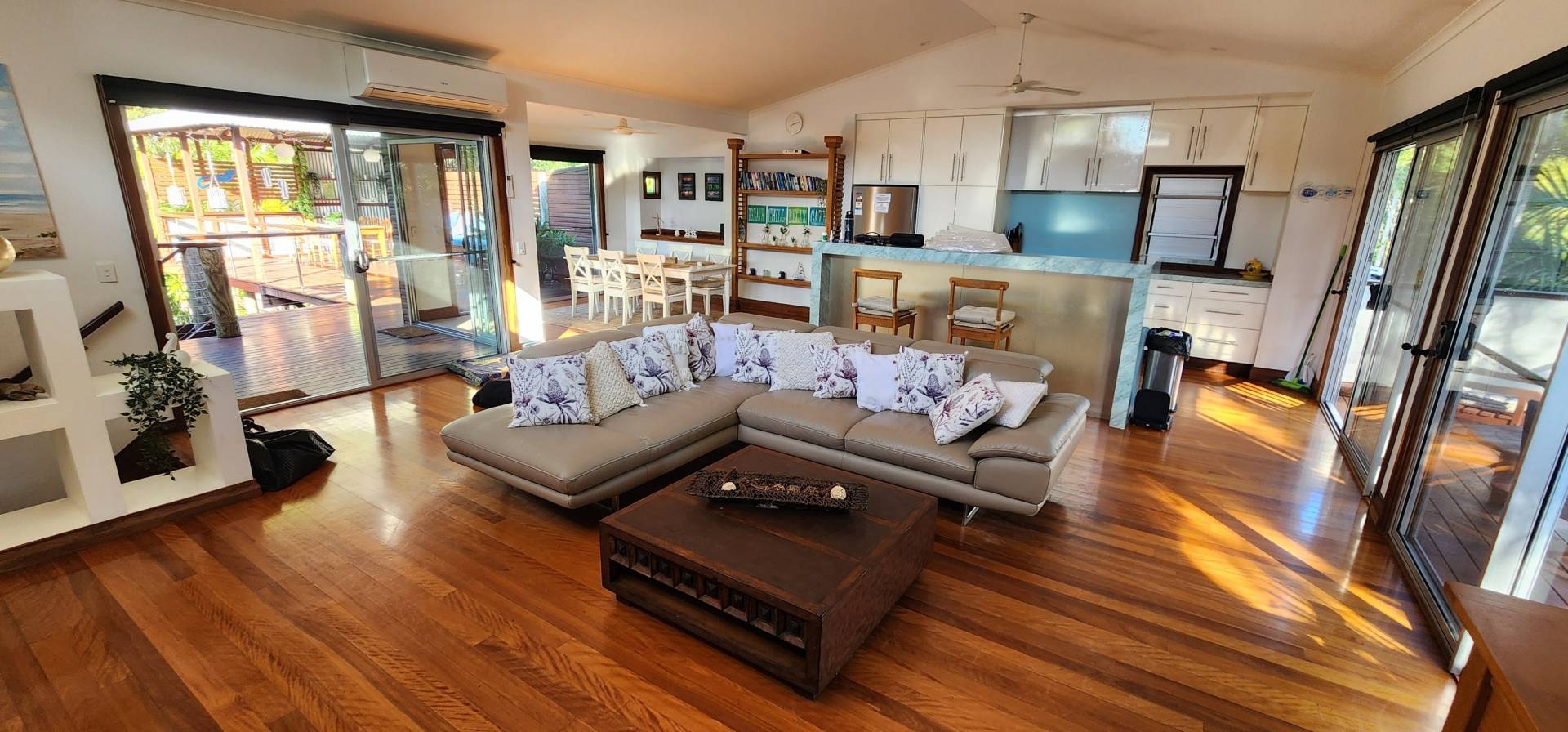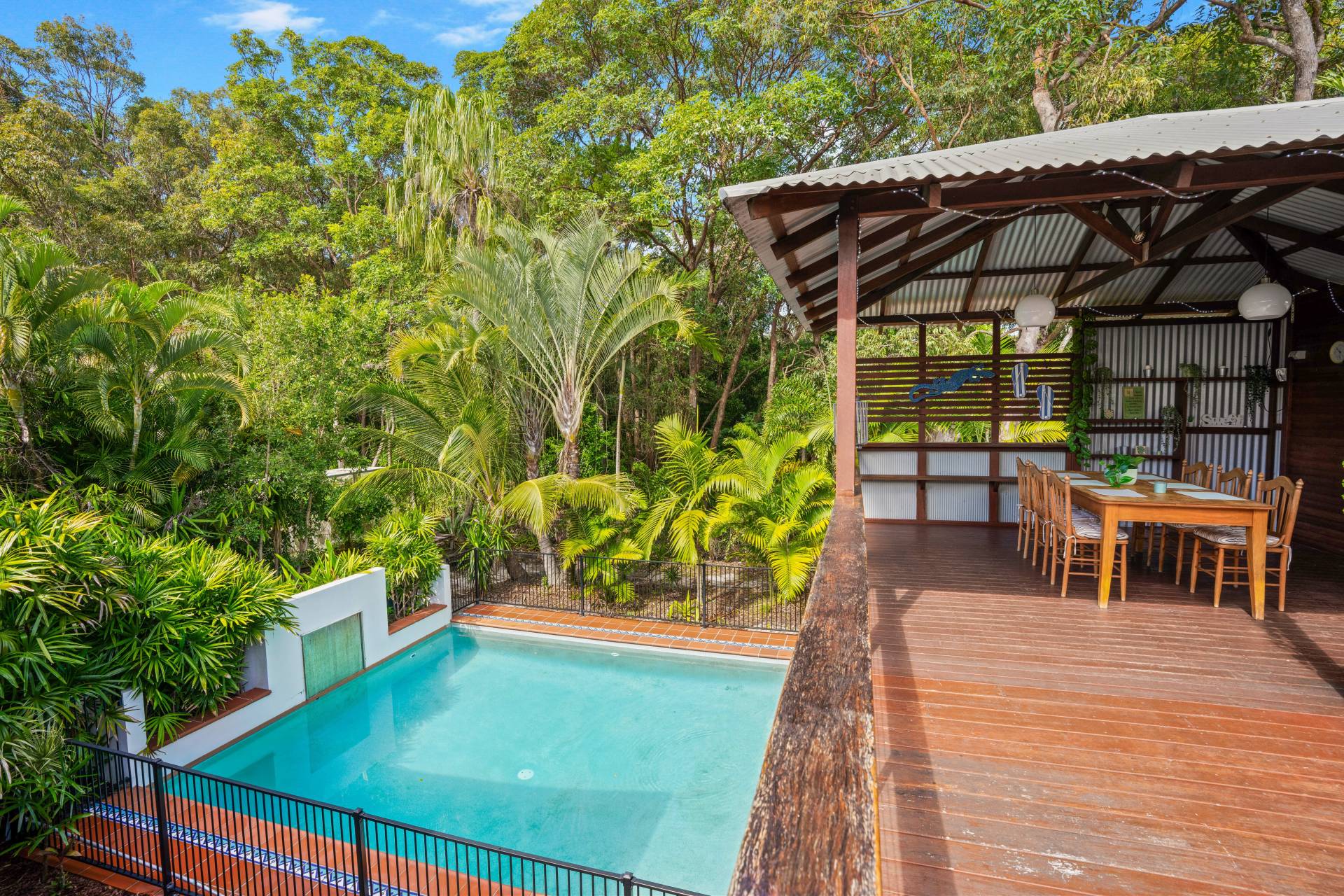 Stunning four-bedroom, two bathroom house with a gorgeous inground pool and air conditioning. Imagine, relaxing on the deck surrounded by bushland, overlooking the pool, while you listen to the sounds of the waves crashing on the shore less than 300 metres away!