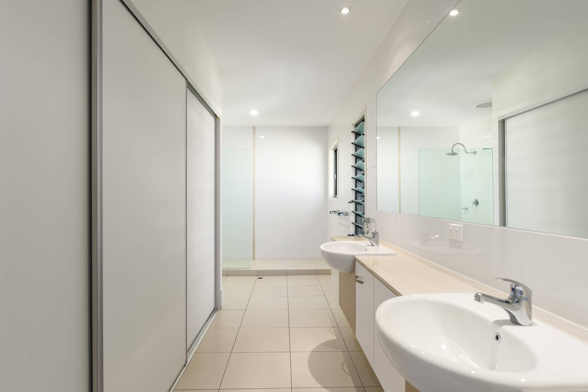 * King sized bedroom with large shower ensuite, dual basins and ample storage space