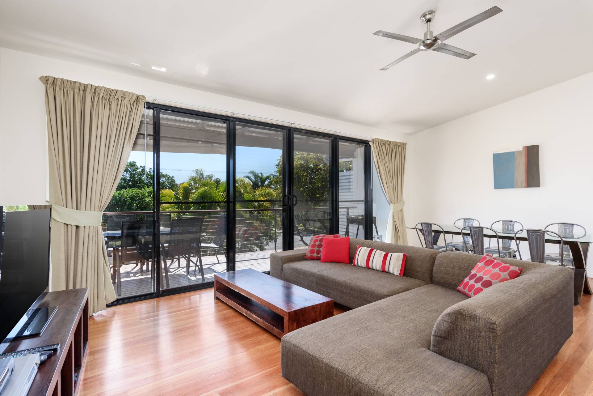 Experience relaxation in comfort in this modern, two storey townhouse located in the heart of Rainbow, just a few minutes’ walk to the beach or shops, the hotel, clubs, cafes, playgrounds and free BBQ areas.