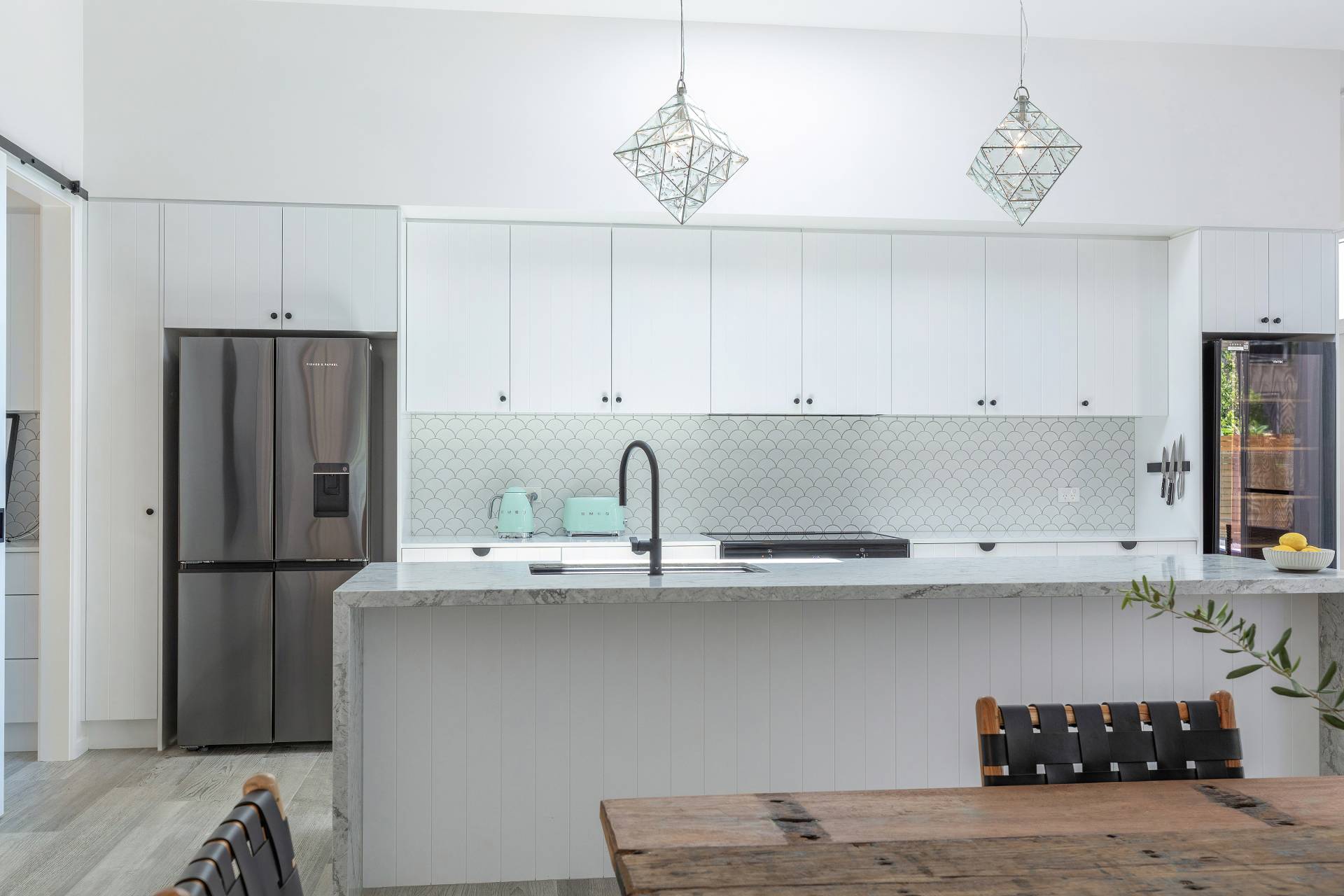 •             Plumbed-in fridge with automatic ice maker and chilled water
