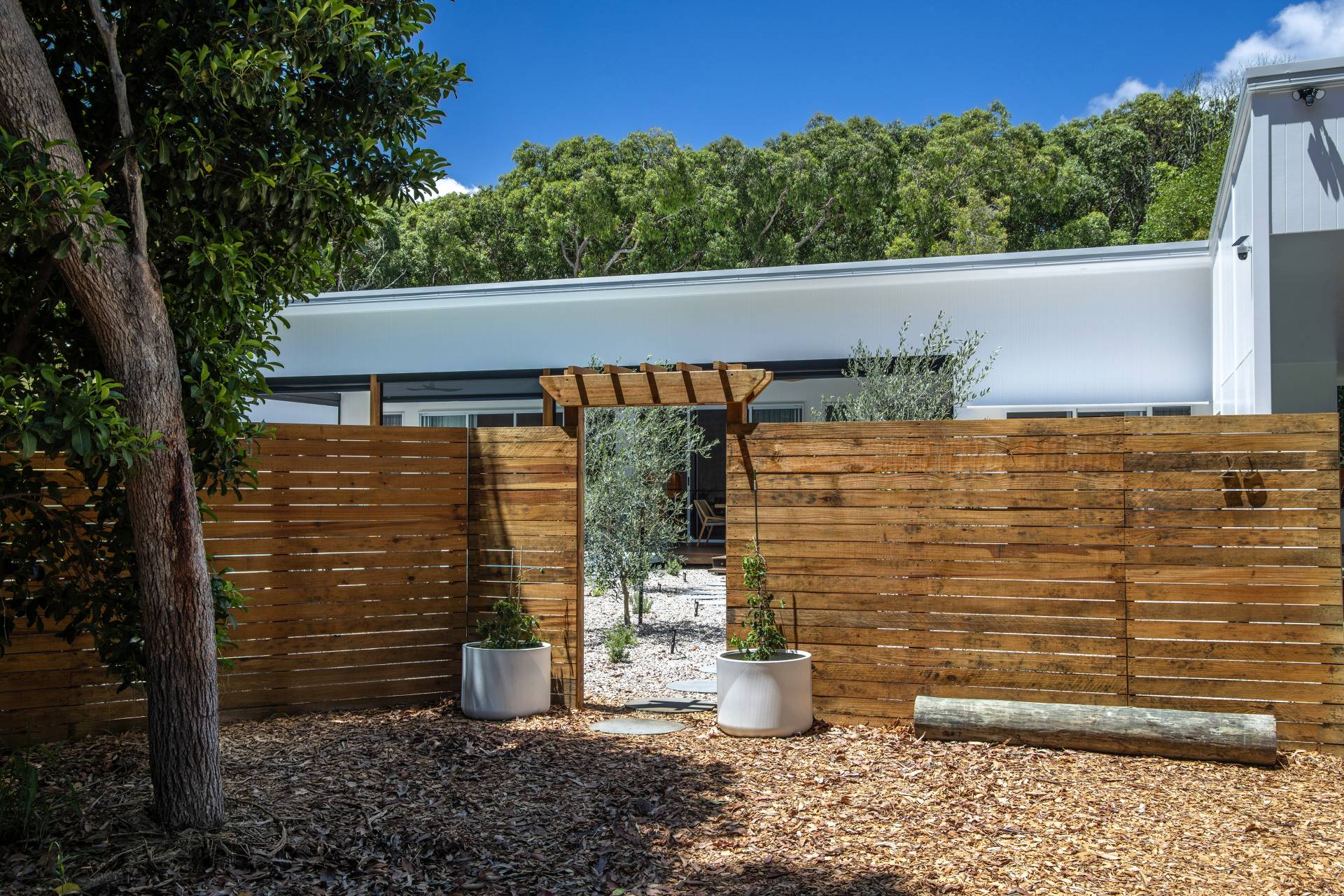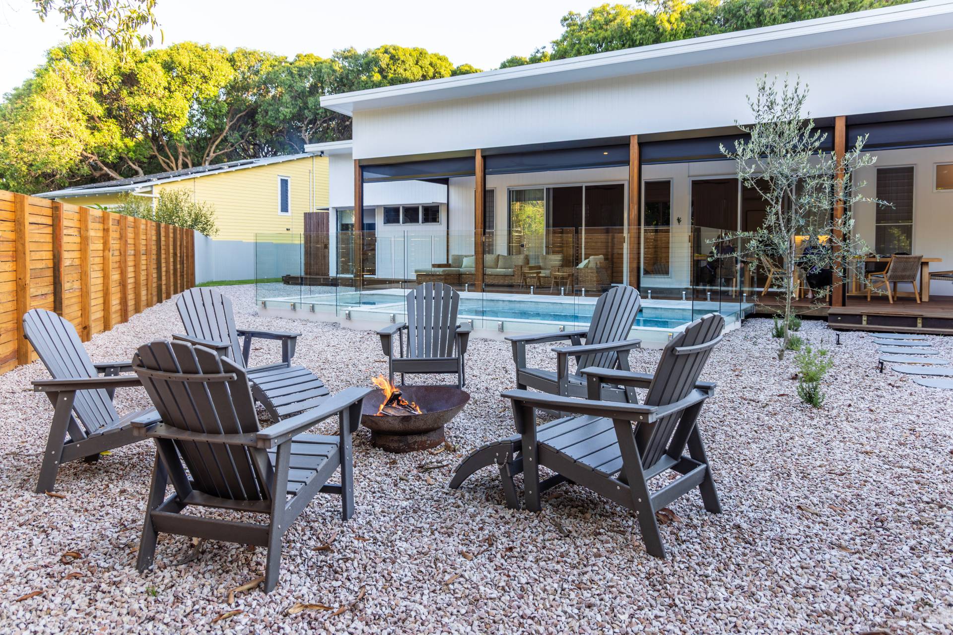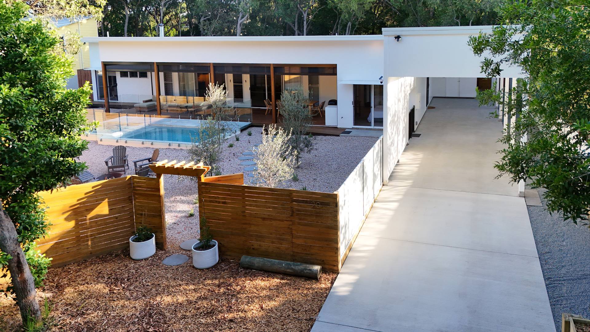 Imagine, relaxing on the deck surrounded by bushland, overlooking the pool, while you listen to the sounds of the waves crashing on the shore less than 200 metres away via a bush track. Wake to the sound of waves, framed by an olive grove in your own yard and the sun-dappled bush just beyond the fence.