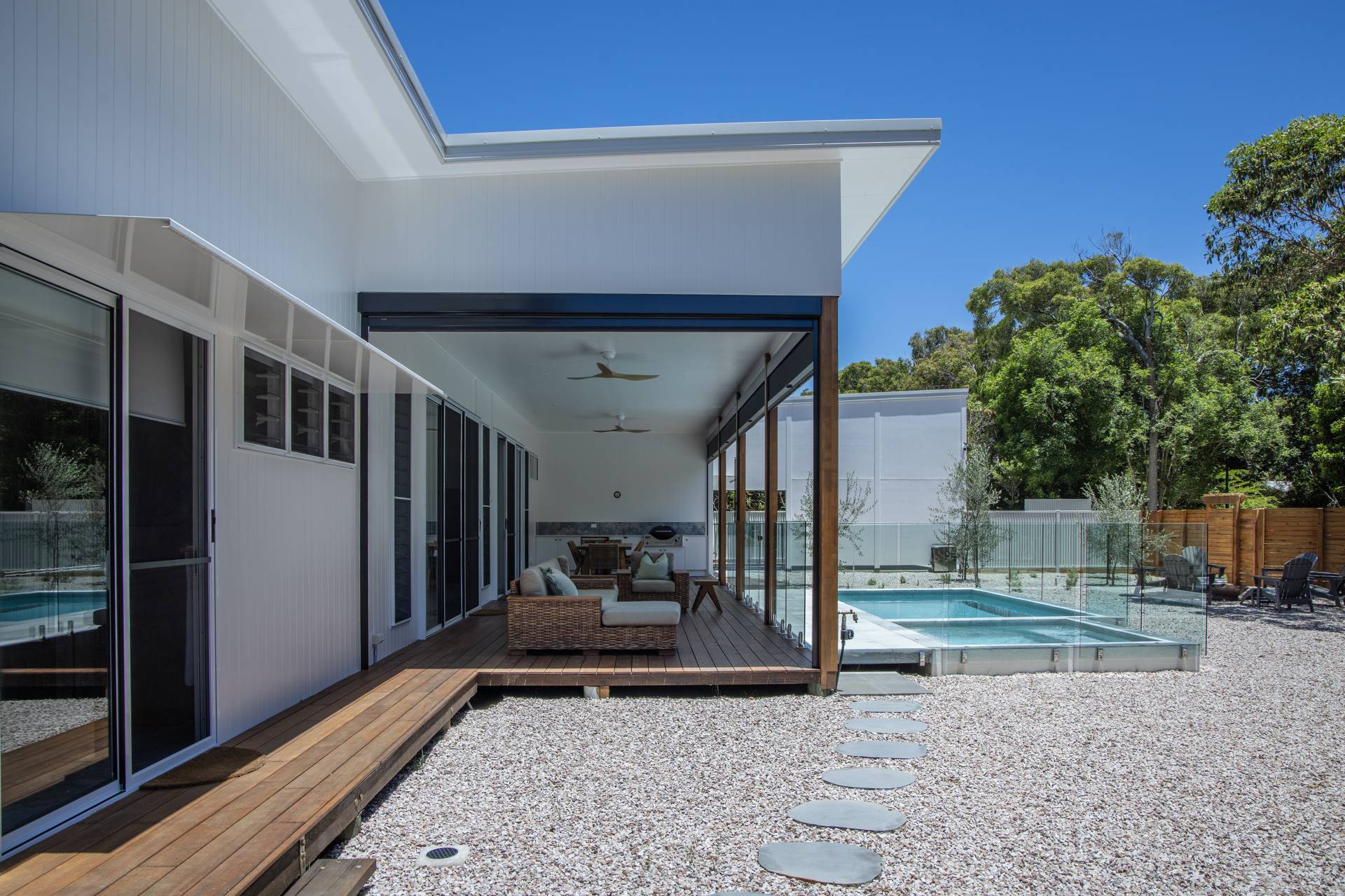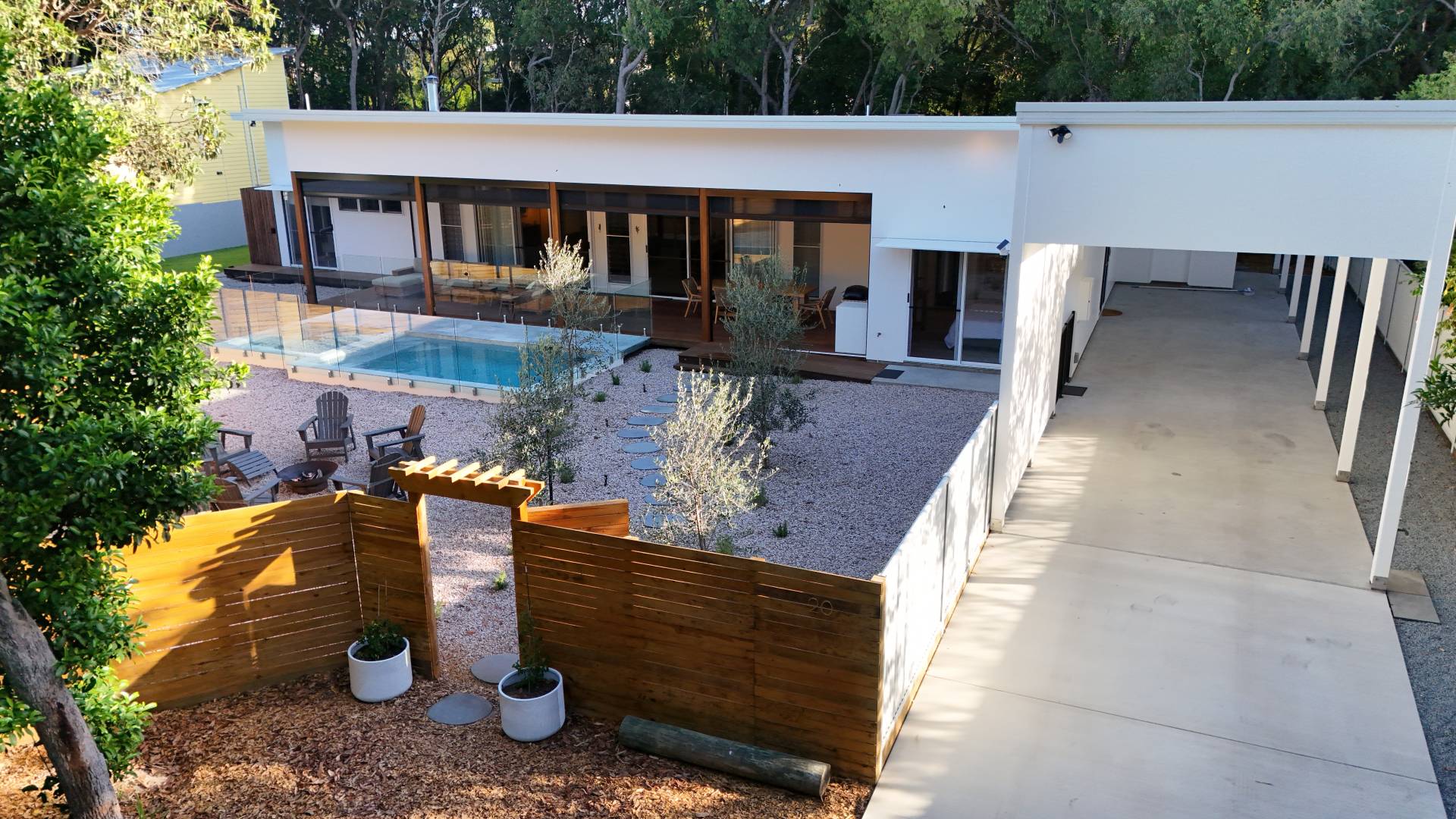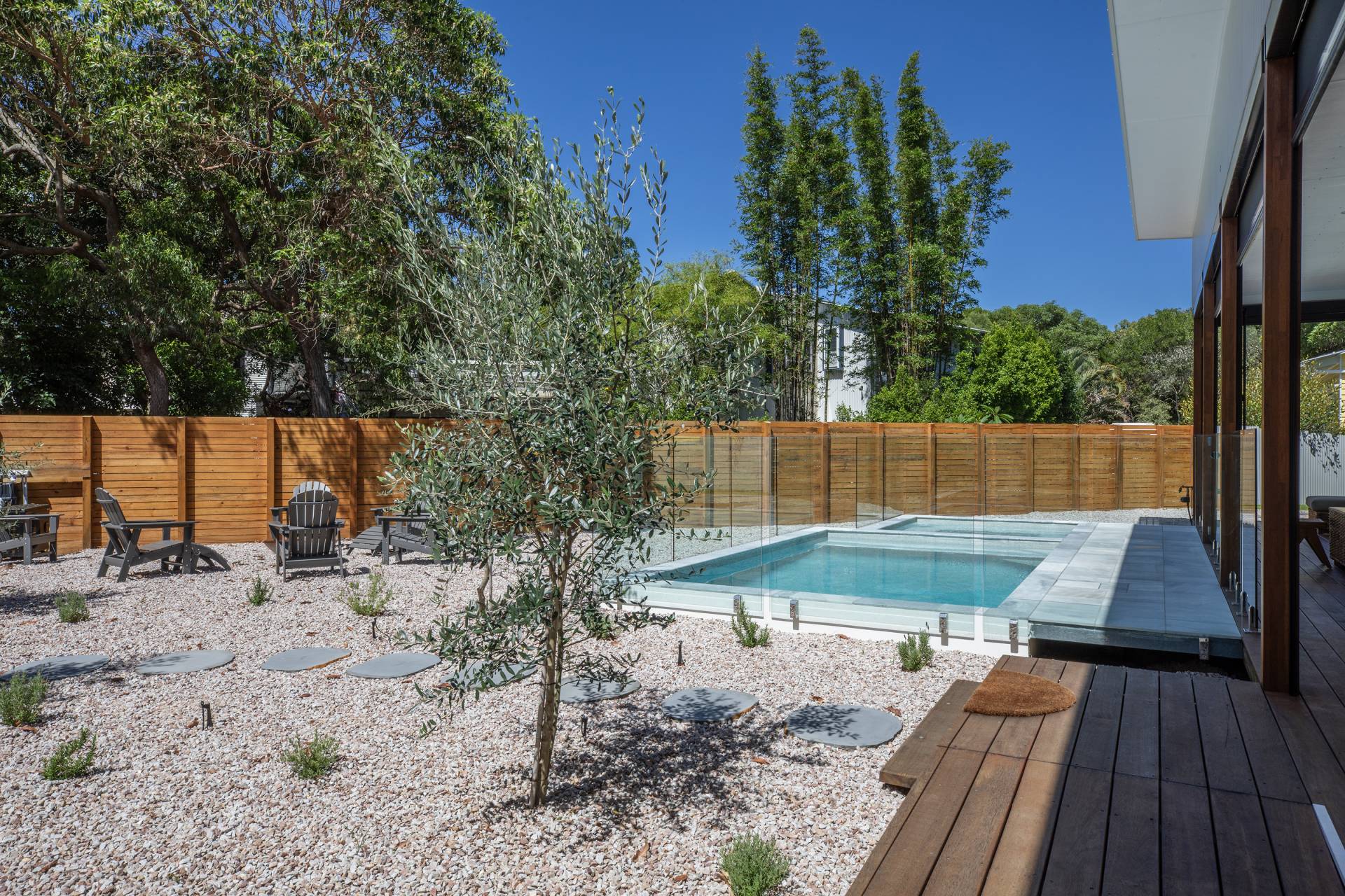 •             Expansive decks with views over olive grove, pool and bush