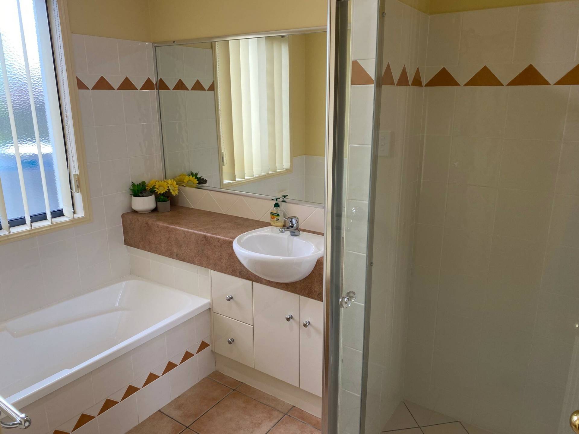 Master bedroom features an ensuite and the other two bedrooms are serviced by a separate bathroom. Separate powder room also.