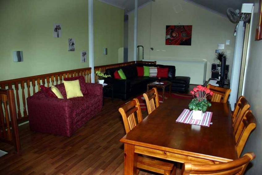 The house consists of a generously sized open plan living/lounge dining room upstairs as well as a modern kitchen with servery window to the deck for easy dining.