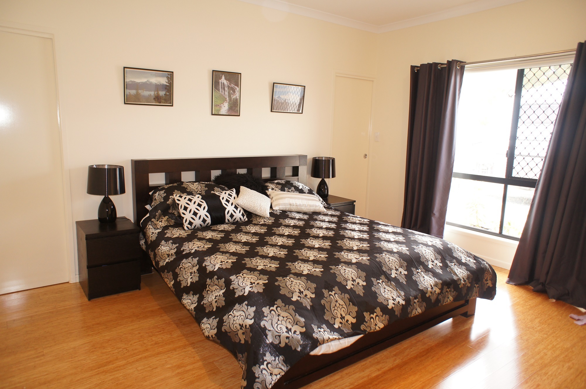 4 bedrooms; the master bedroom is very large with an ensuite bathroom, a walk-in robe, ceiling fans and air conditioning